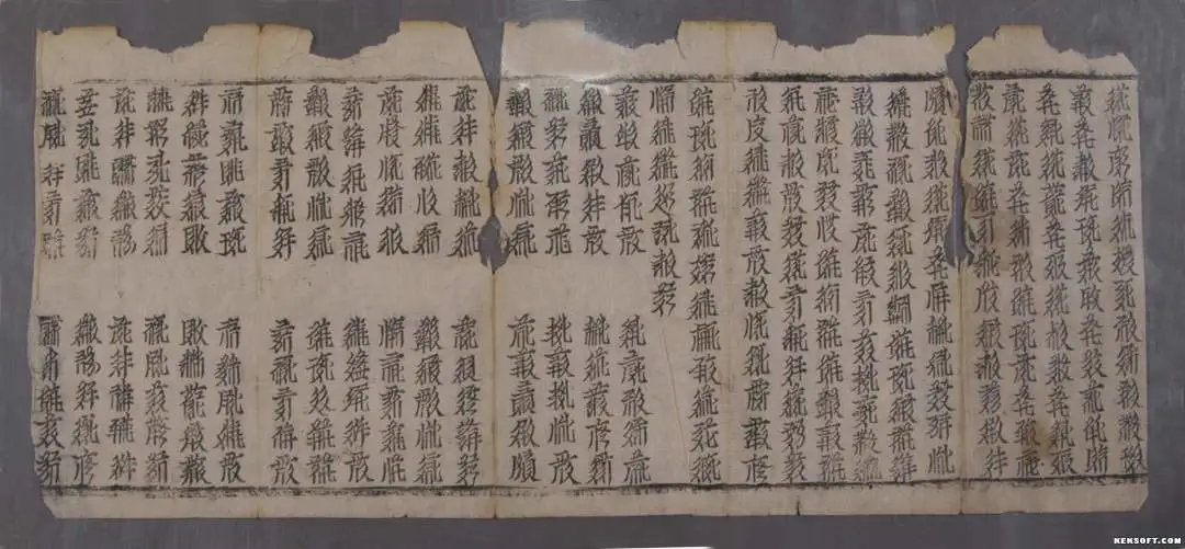 今天向大家分享西夏文印本经“千佛名经”,西夏文献文书,土黄色夹丝绵纸。残存4页,每页5行,满行8字,楷书。字迹清晰,文字内容当为《千佛名经》,木刻版印制,上下有墨线单栏。背面有粘接痕迹。册页装。每页文字上方均墨绘五坐佛。手印各不相同。出土于武威市新华乡亥母洞,为国家二级文物,现馆藏于武威市博物馆。