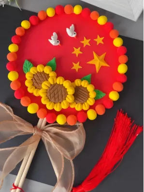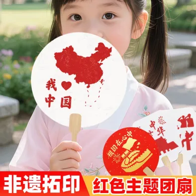 2.手工团扇寄祝福:讲解老师现场教学,从扇面构图、颜料调配到主题绘制,指导孩子亲手制作国庆主题团扇,将对祖国妈妈的祝福融入笔墨之间。