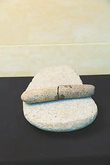 齐家文化石磨盘、石杵 齐家文化博物馆藏