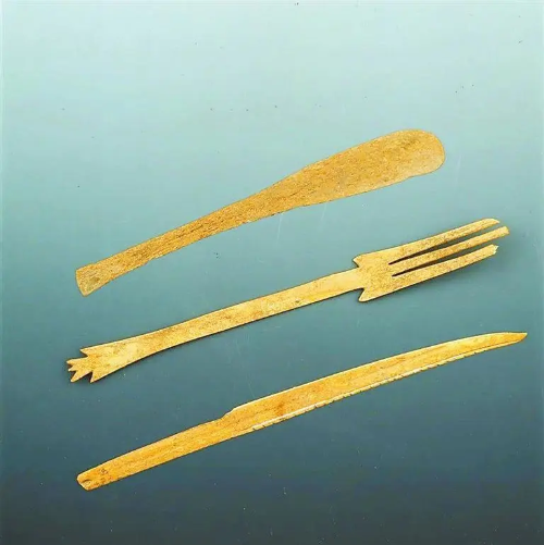 齐家文化中的餐具,尤其是骨叉,形状和尺寸与现在的叉子绝无二致,打破了人们头脑中中西餐具不同的习惯观念,基本可以确定早在5000年前,中国人就已经使用了刀叉进食,这对于研究中国古代饮食文化具有极为重要的意义。