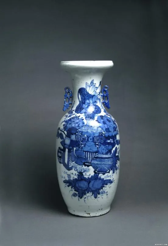 大家好,今天为大家分享的是清代瓷器,蝴蝶耳博古花卉青花瓷瓶。盘口内敛,束长颈,颈部一对镂空蝴蝶形耳,溜肩,深直腹,圈足。白胎白釉青花,自颈至腹部饰博古花卉图案,器型规整美观。为国家三级文物,现馆藏于武威市博物馆。