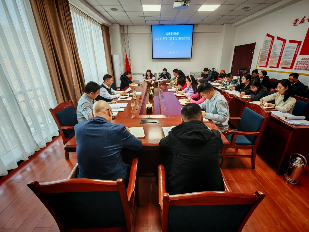 2月12日下午,武威市博物馆召开2026年春节节前重点工作安排部署会议,对安全生产、廉洁纪律、开放服务、值班值守等重点工作进行了安排部署。全体干部职工及参服单位负责人参加会议。