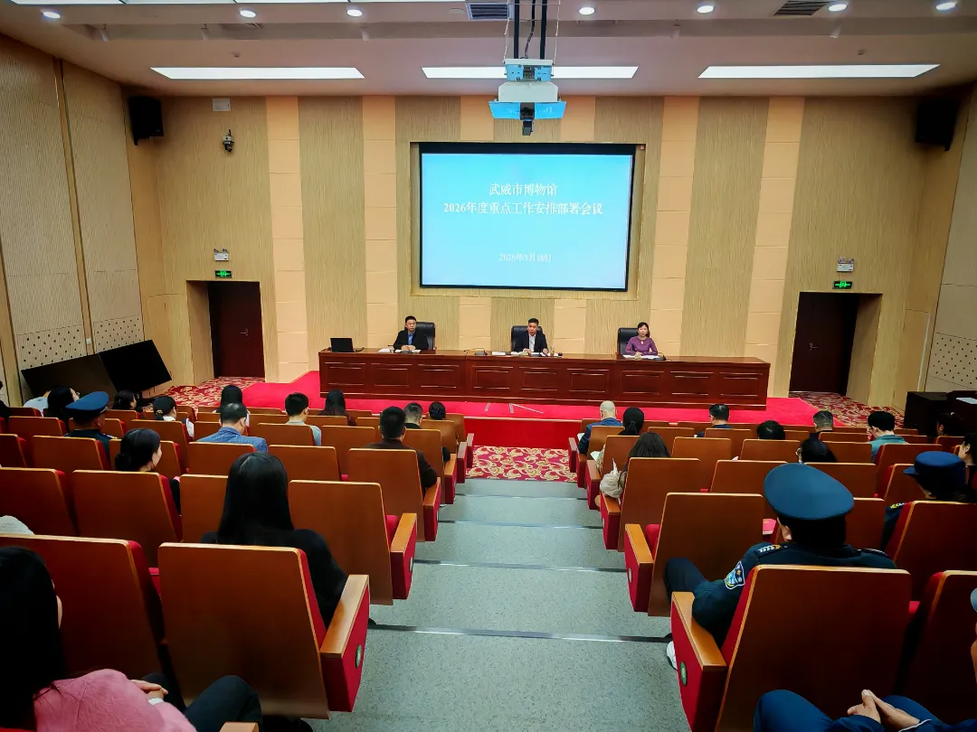 为深入贯彻落实局党组工作部署要求,凝心聚力推动全年目标任务高标准落地、高质量完成。3月10日,武威市博物馆组织召开2026年度重点工作安排部署会议。全馆干部职工、劳务派遣人员、参服单位全体人员参加了会议。