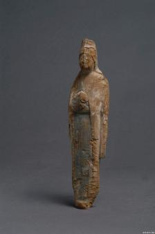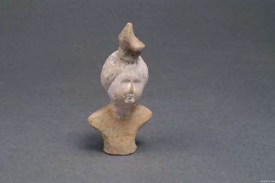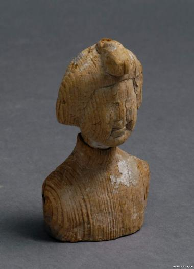 唐代木雕彩绘半身女俑
