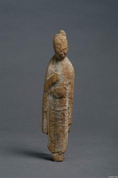 木雕彩绘女立俑