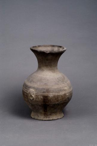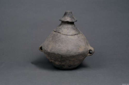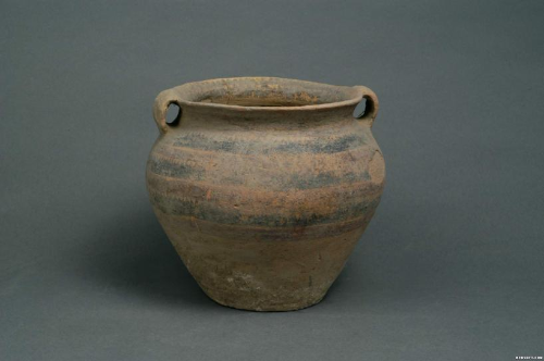双耳灰陶罐