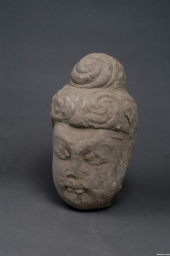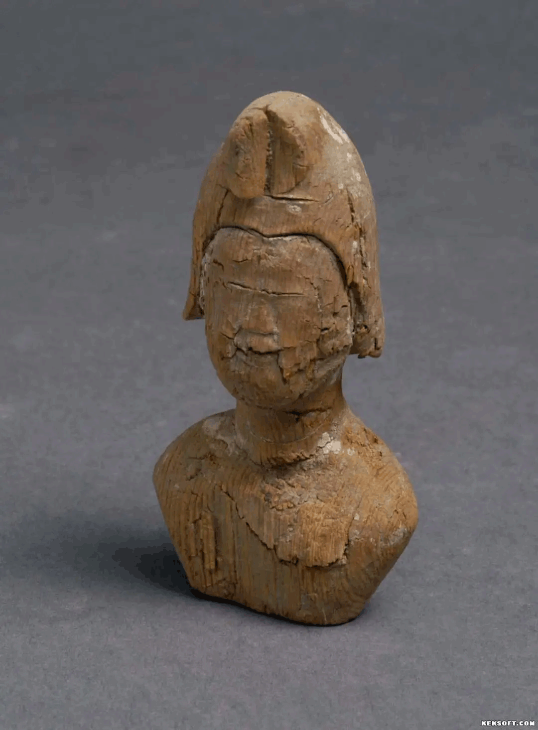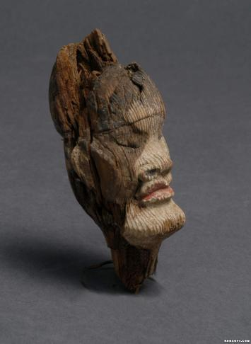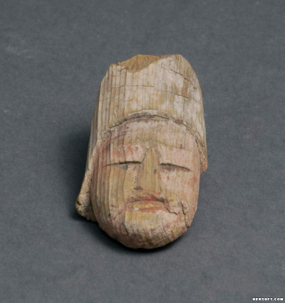 木雕彩绘男俑头