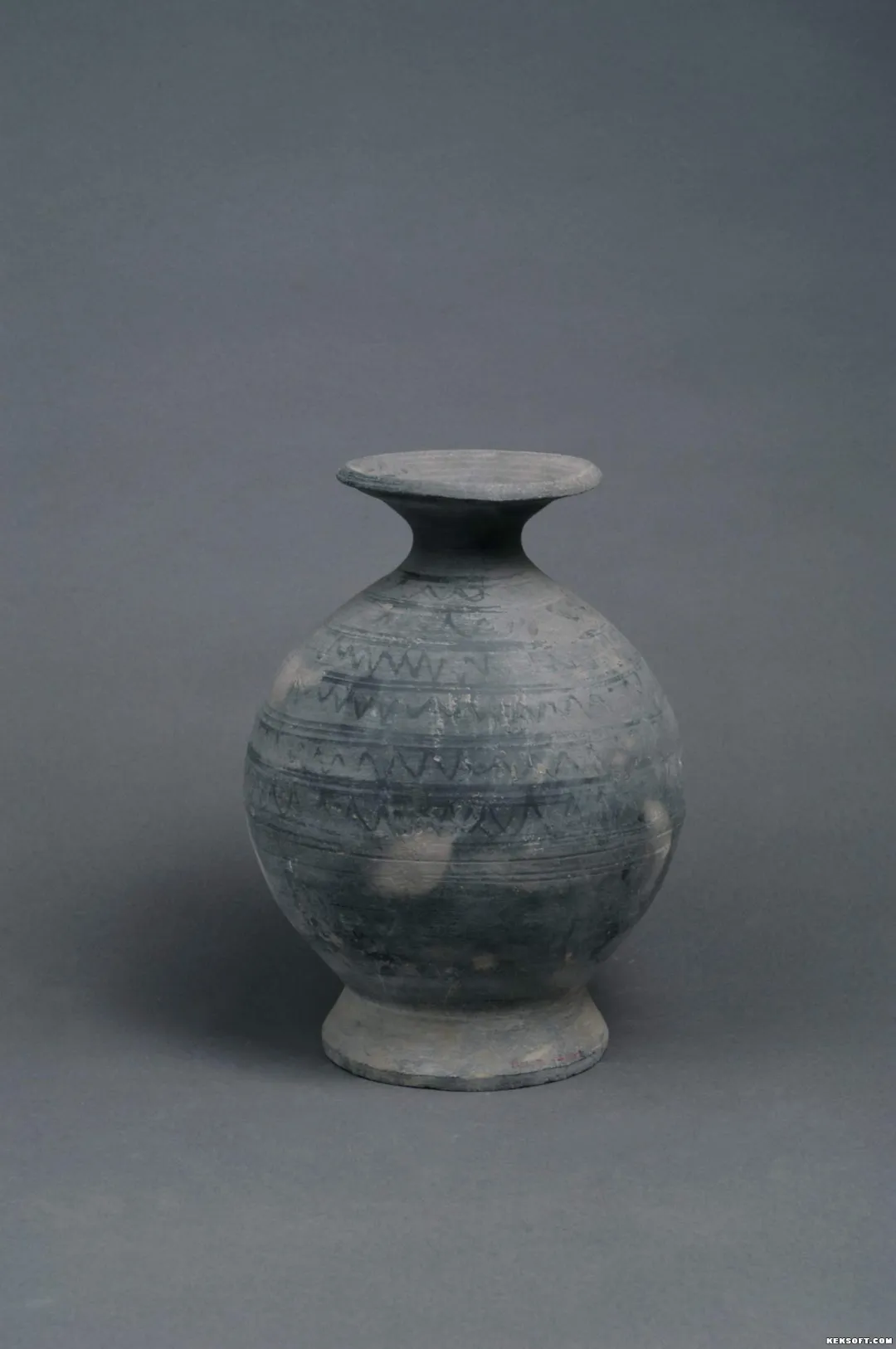 汉代陶器彩绘锯齿纹灰陶钟