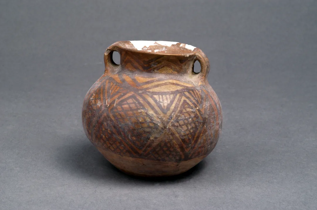 马家窑系菱格纹双耳彩陶罐