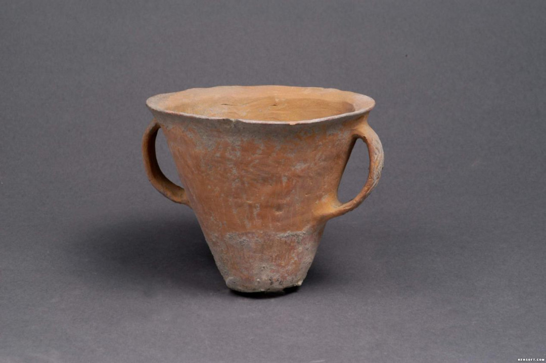 双耳细泥红陶盂