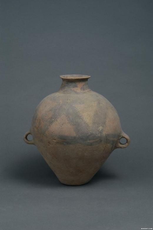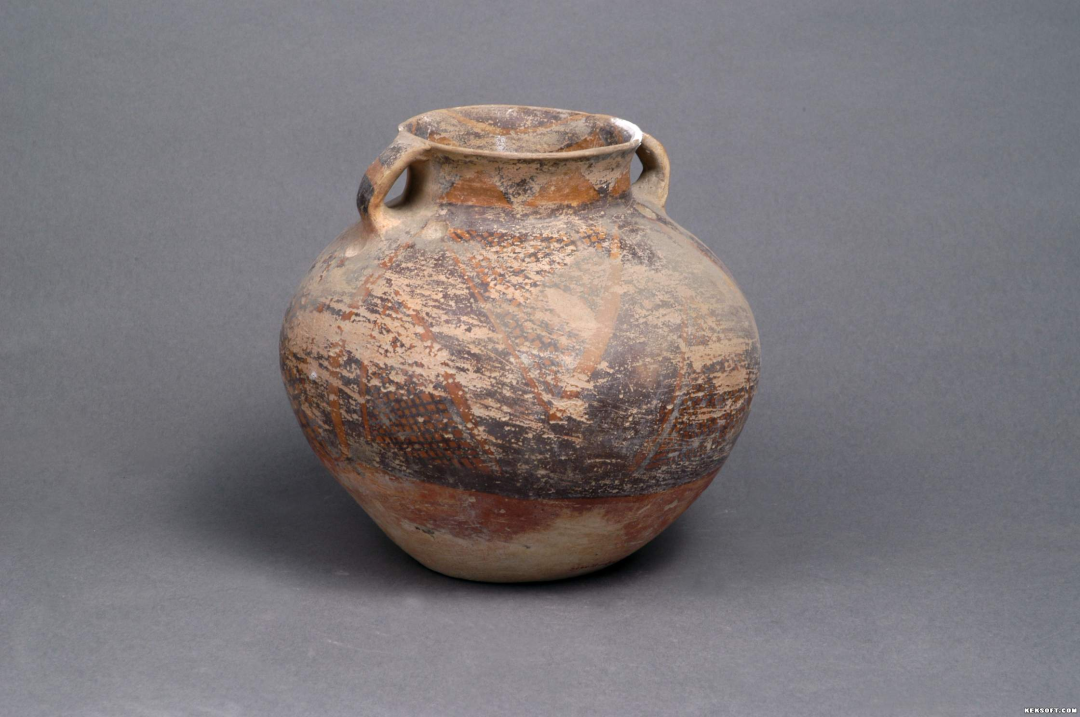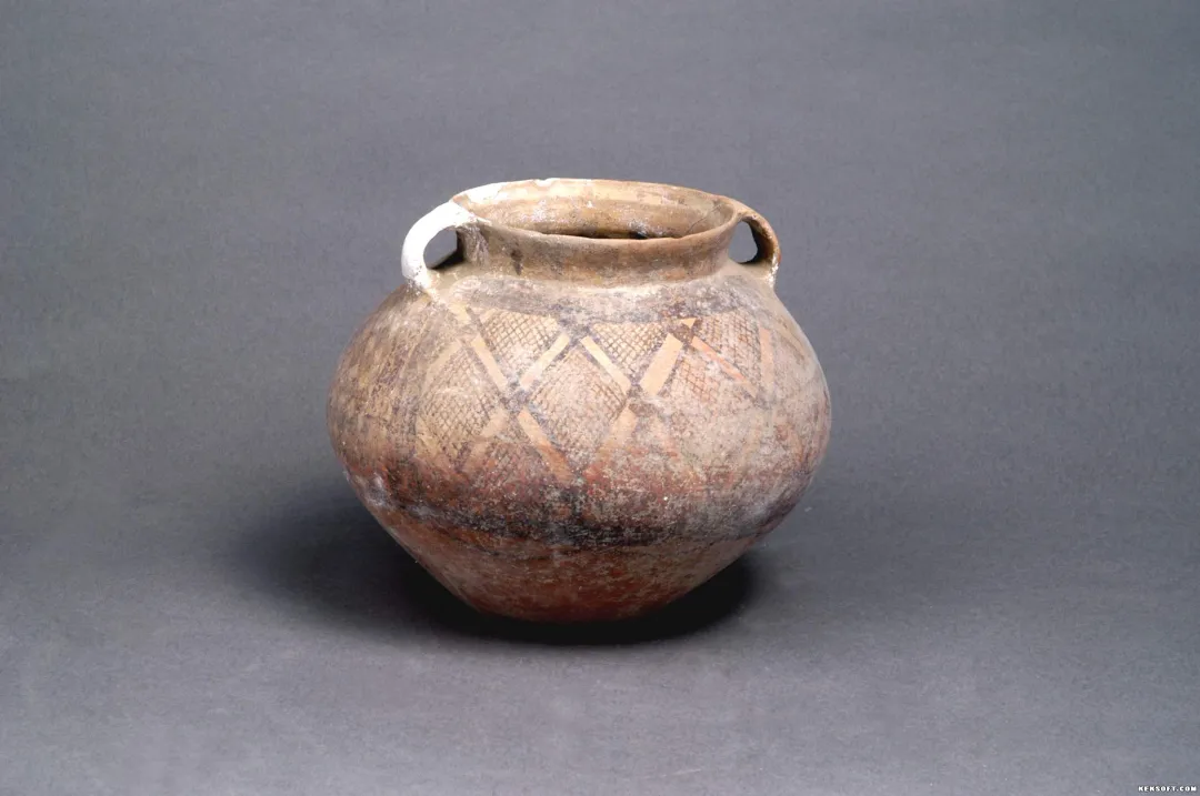 【精品文物线上赏析】锯齿网格纹双耳彩陶罐