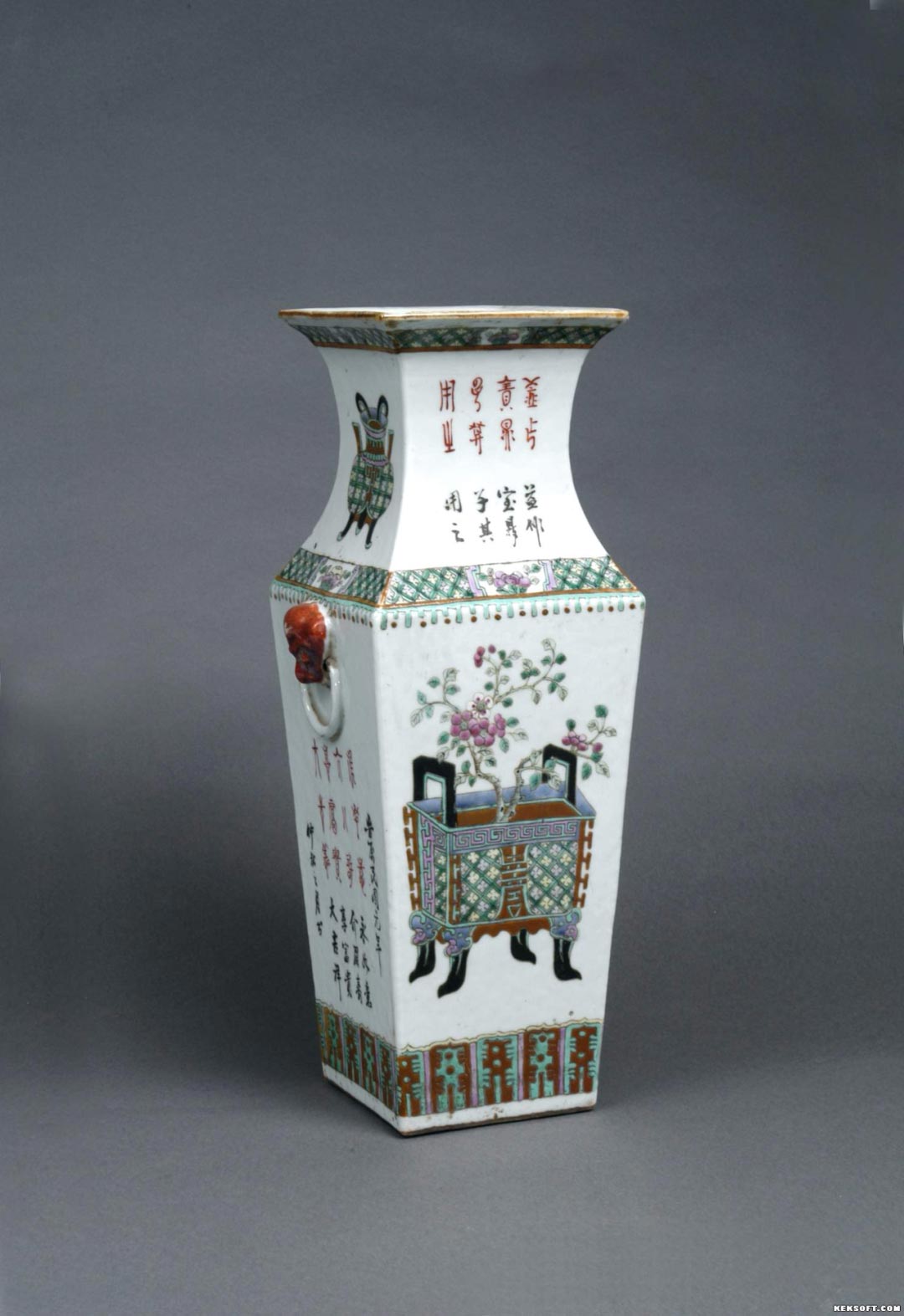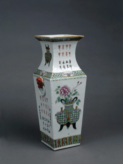 墨书“民国元年”款五彩瓷方瓶