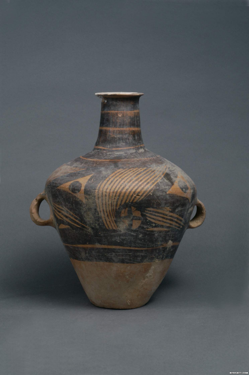 【精品文物线上赏析】马家窑系三角网格纹双耳彩...
