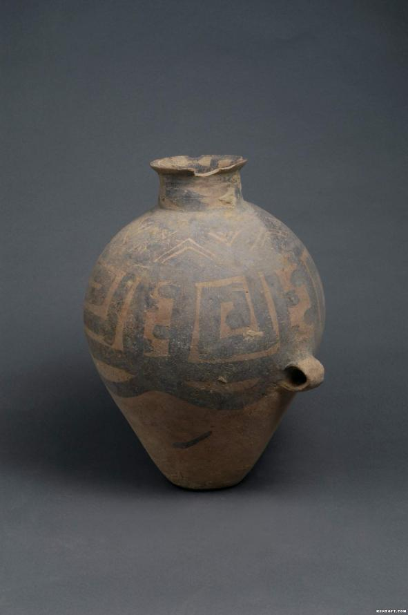 马家窑系回纹双耳彩陶壶
