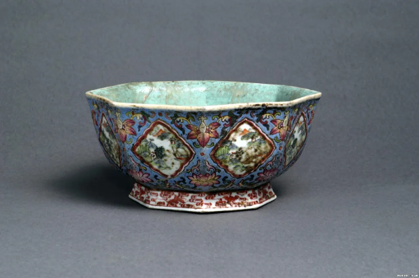 清“道光款”八角形五彩瓷碗