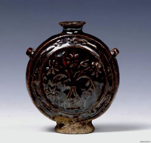 褐釉瓷扁壶