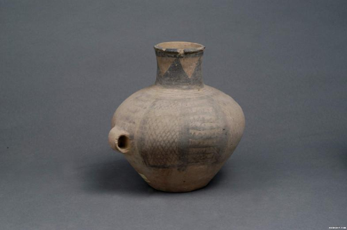 马家窑系三角网格纹单耳彩陶罐