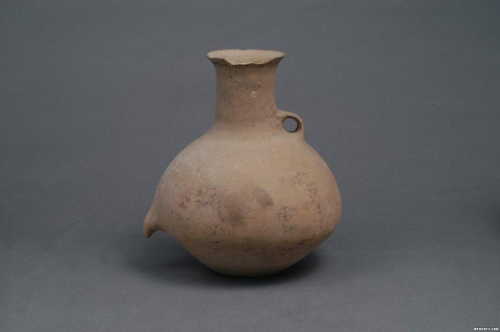 汉代陶器单耳带流灰陶壶