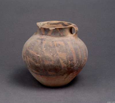 『马家窑系平行线纹单耳彩陶罐』