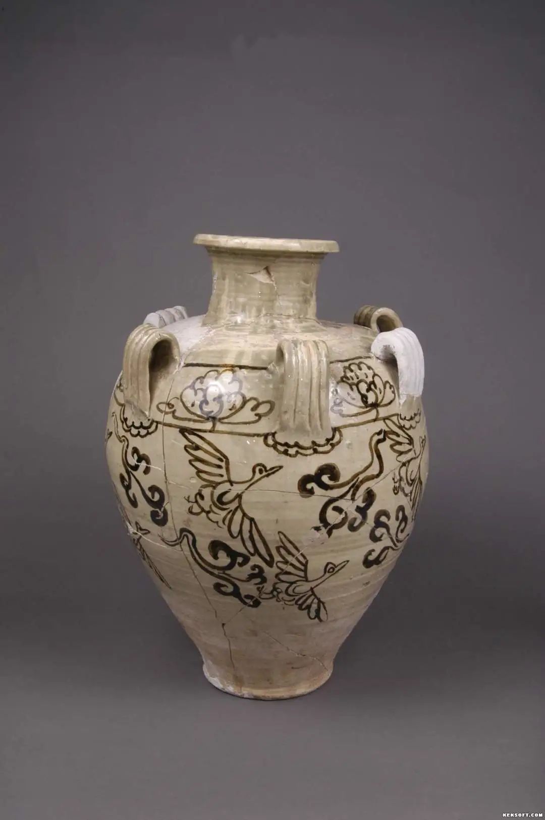 草书西夏文白釉绘缠枝莲纹瓷罐
